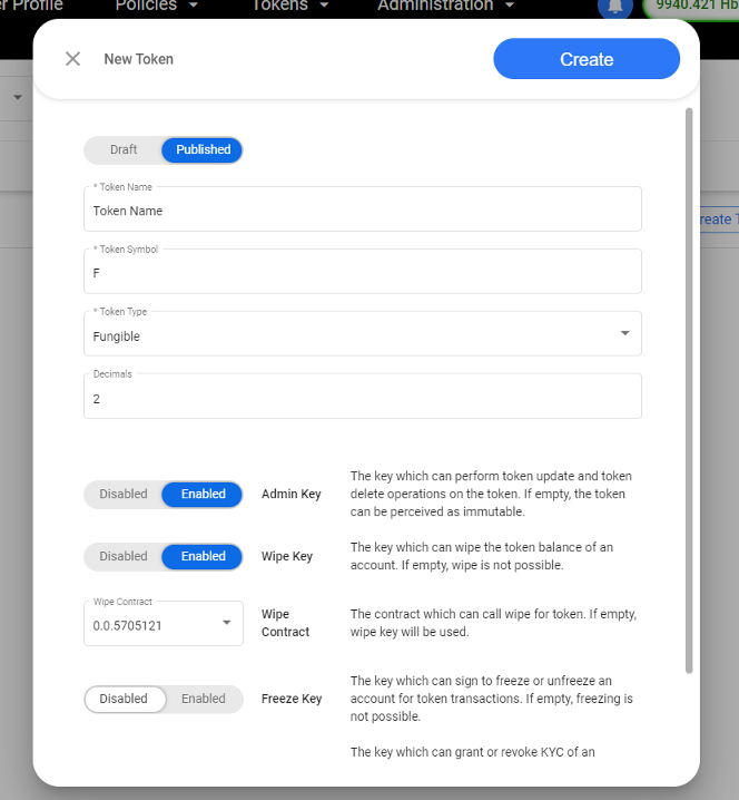 Now, we should be able to configure Hedera and Token Identifier during creation oof Wipe requests.